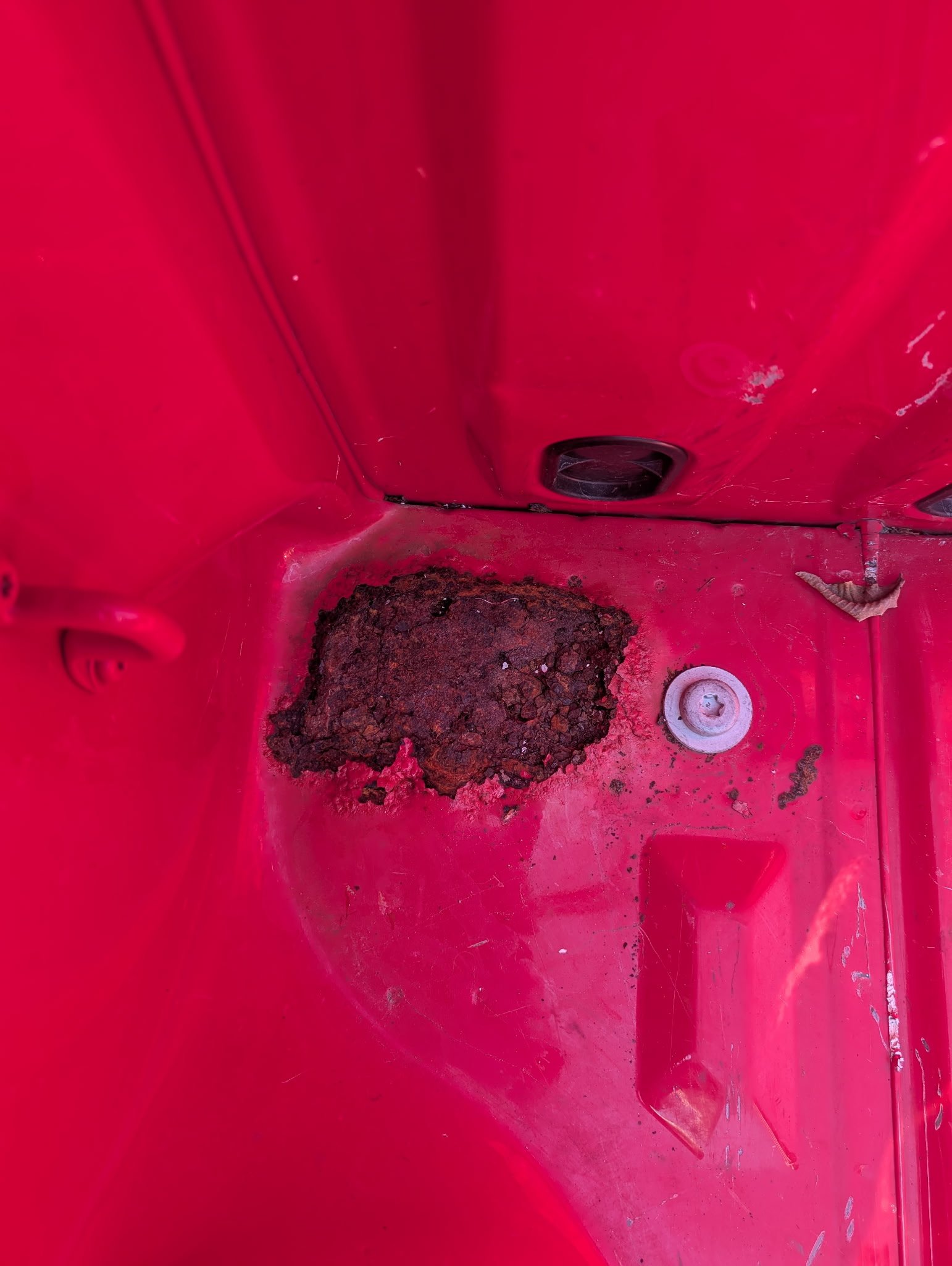 🪣 Dirt and grit rub between the liner and the paint, wearing the finish down to bare metal.